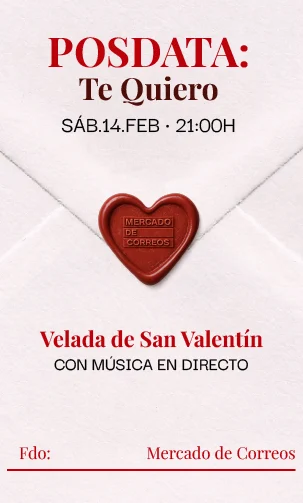La noche más romántica del año te espera en Mercado de Correos para vivir una velada inolvidable acompañada de un menú especial que te robará el corazón.